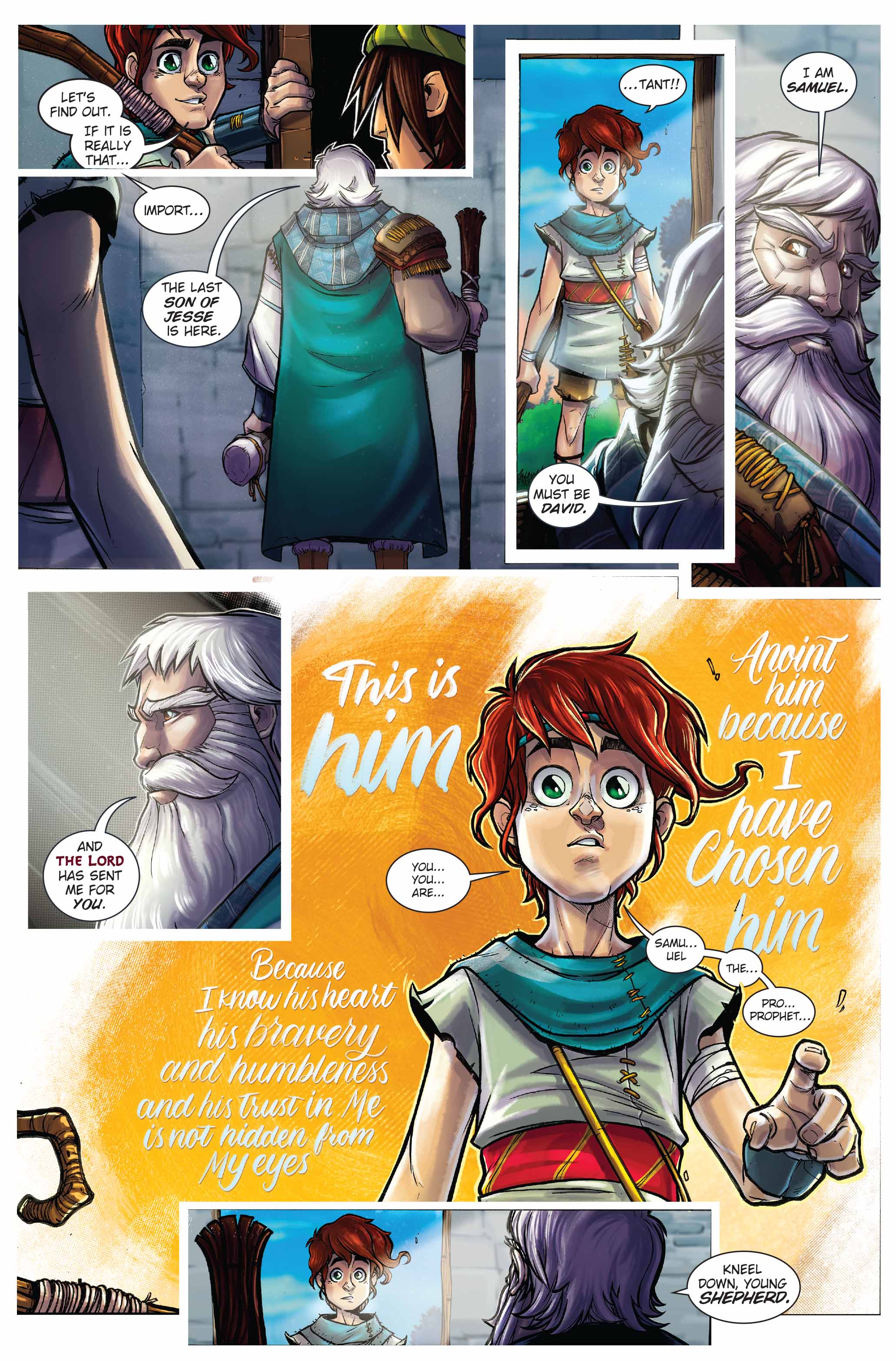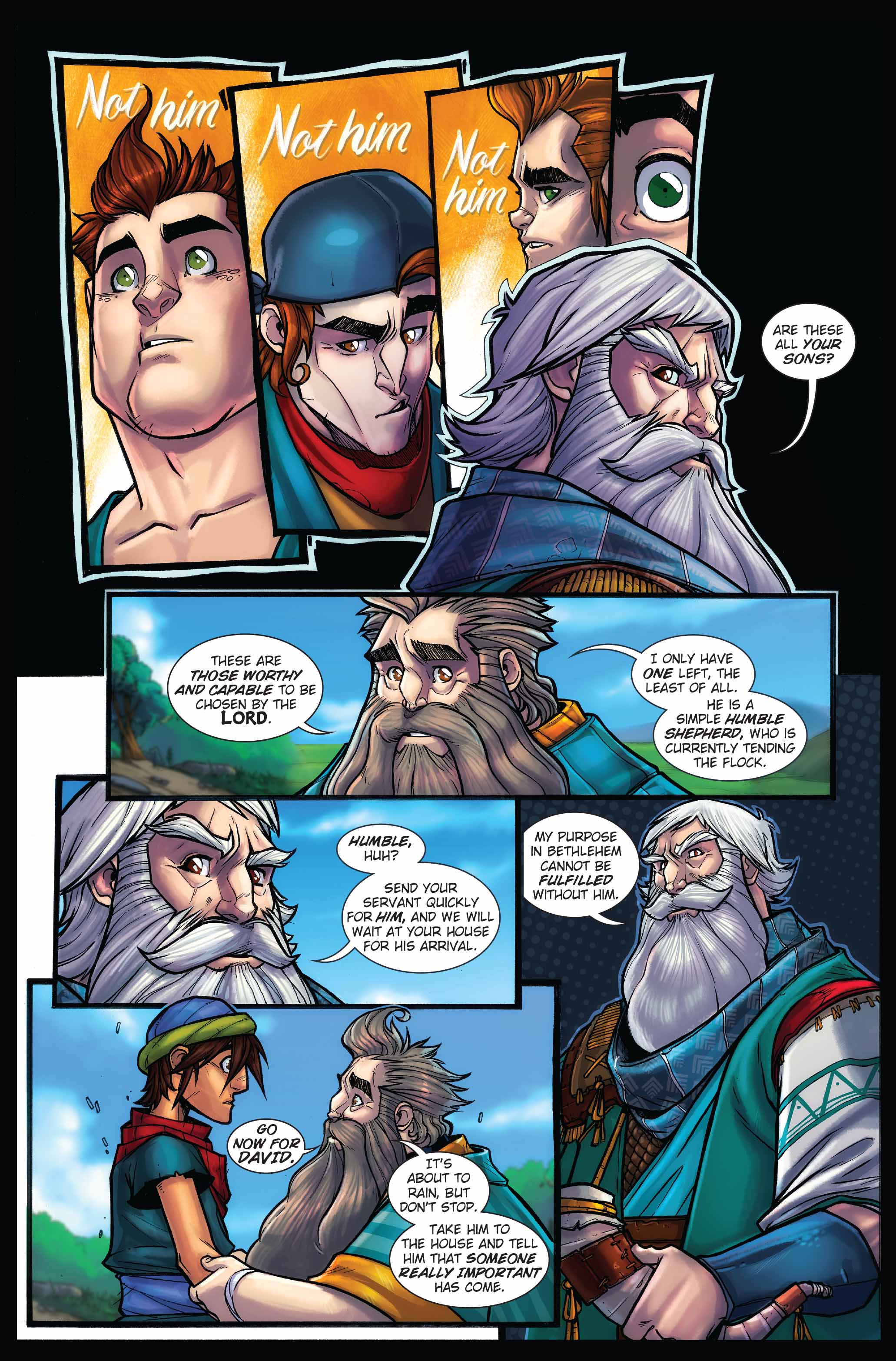 Continue the amazing account of the origins of the Man from God's Own Heart in a brand-new way as Chronicles of Faith: David continues with Issue #01, "The Heart of a King". In this world-class, full-color, 32-page comic, we delve deeply into the continuing story of David, unveiling a whole new cast of characters as we watch one of the most critical moments of David's young life occur in his path from shepherd to King of all Israel. Don't miss this comic, or the opportunity to write your own Chronicle of Faith!